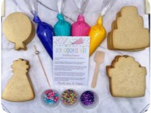 Order a DIY kit to have at a birthday party, Halloween party, Christmas gathering or any holiday. Kits come with blank cookies for decorating, bagged icing, sprinkles, decorating tools and instructions.